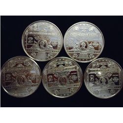 5 1 OUNCE ADVP COPPER ROUNDS ($2 WASH BANK NOTES)