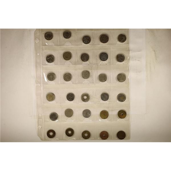 30 ASSORTED VINTAGE AMUSEMENT TOKENS ON SHEET