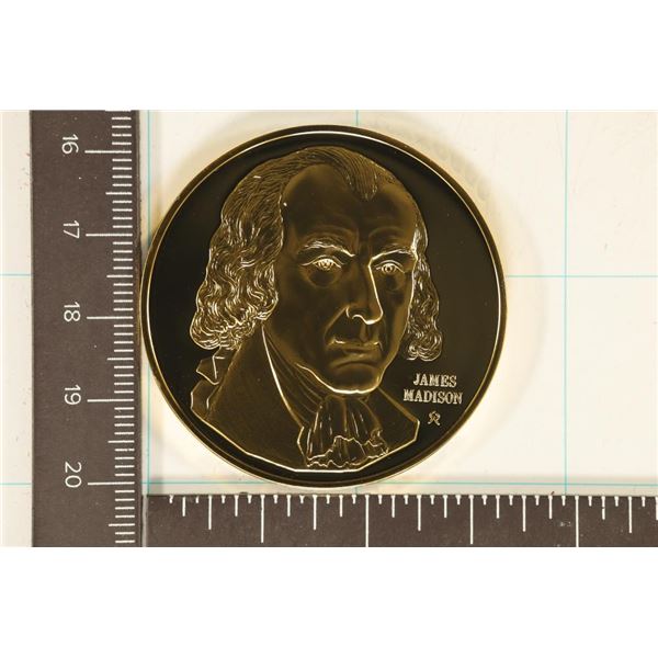 PRESIDENTIAL ROUND PROOF, "JAMES MADISON" IN HARD PLASTIC CAPSULE, EDGE MARKED WITH HALL MARKS TOO