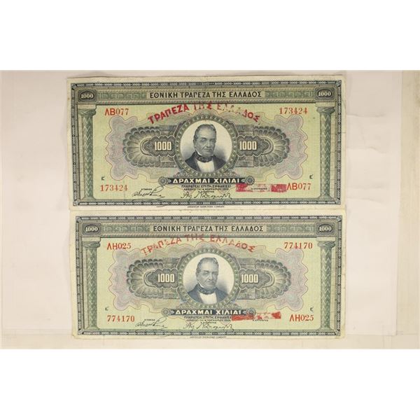 2-1926 GREEK 1000 DRACHMAI BILLS