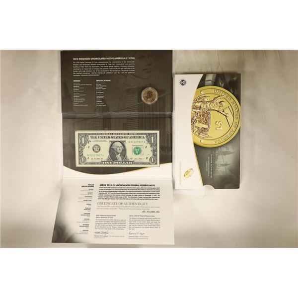 AND CURRENCY SET, CONTAINS: ENHANCED UNC NATIVE AMERICAN DOLLAR COIN AND A 2013 $1 FRN CRISP UNC, ORIGINAL US MINT PACKAGING
