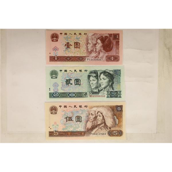 3-PEOPLES BANK OF CHINA CRISP UNC BILLS: