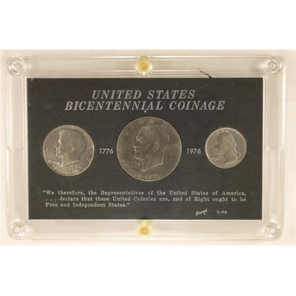 1976 IKE DOLLAR, 1976 JFK HALF DOLLAR AND 1976 WASHINGTON QUARTER, IN NICE HARD PLASTIC HOLDER