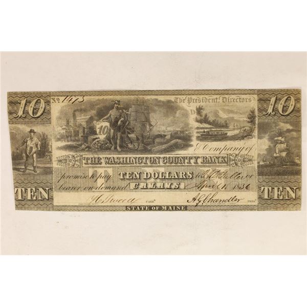 1836 THE WASHINGTON COUNTY BANK OBSOLETE $10