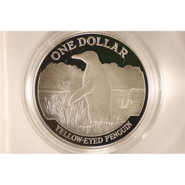 IN HARD PLASTIC CAPSULE 27.2G STERLING SILVER, YELLOW EYED PENGUIN