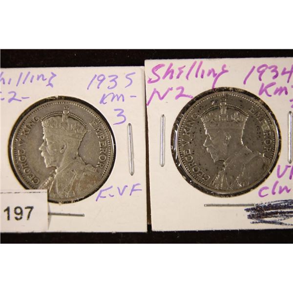 1934 & 1935 NEW ZEALAND SILVER 1 SHILLING COINS