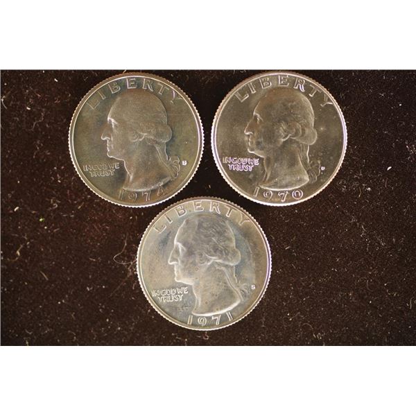 1970-S,1971-S & 1974-S PROOF WASHINGTON QUARTERS