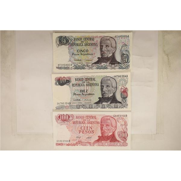 3-CENTRAL BANK OF ARGENTINA BILLS CRISP UNC