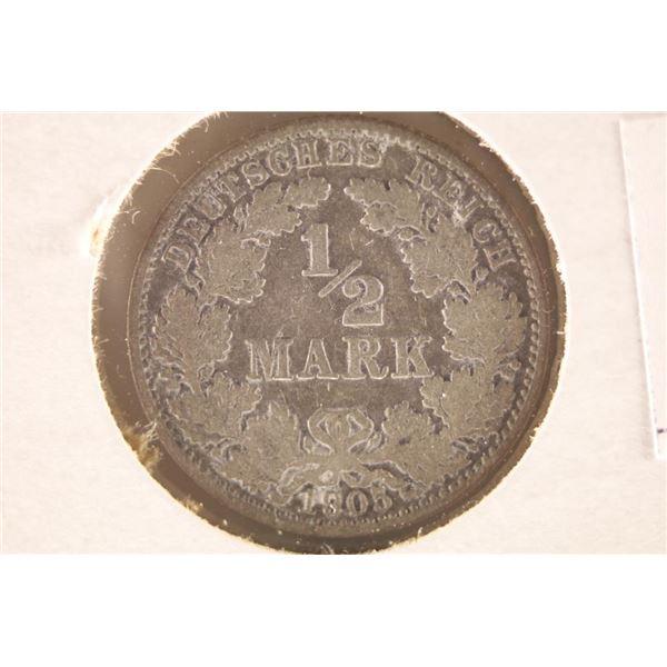 1905-A GERMAN SILVER 1/2 MARK. .0802 ASW
