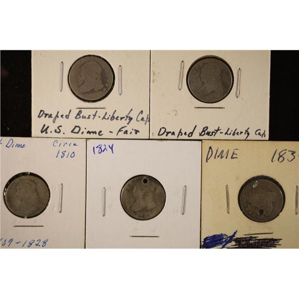 5-CAPPED BUST DIMES: 3 NO DATE, 1824 HOLED & 1834