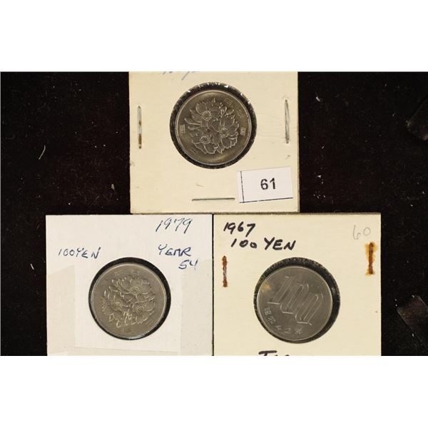 1967, 1970 & 1979 JAPAN 100 YEN COINS ALL UNC