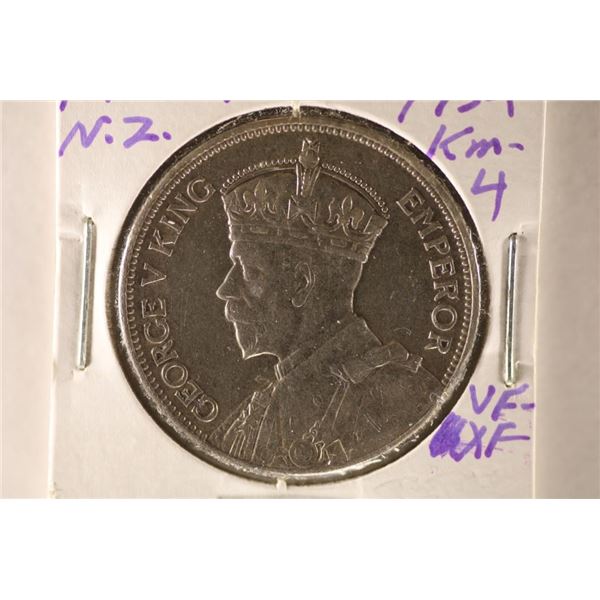 1934 NEW ZEALAND SILVER 1 FLORIN (VF-XF)