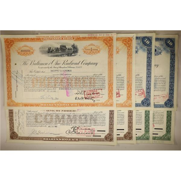 8 ASSORTED VINTAGE RAILROAD STOCK CERTIFICATES