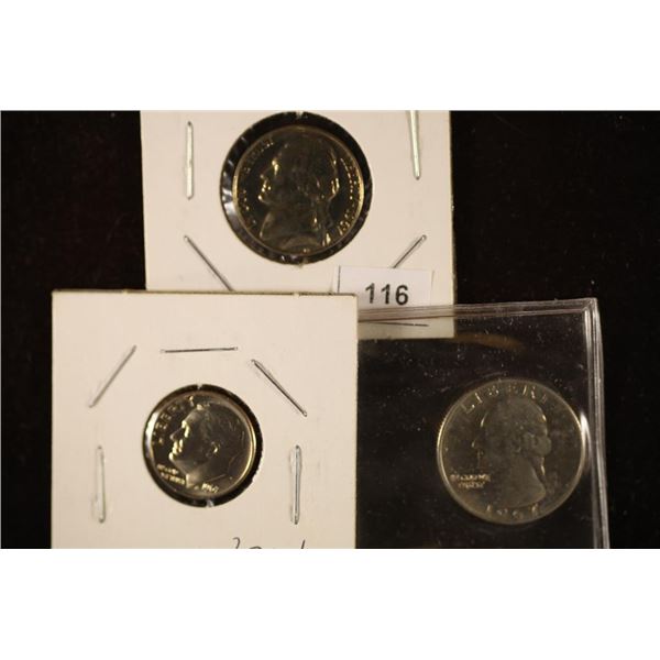 3 BRILLIANT UNC 1942 MERCURY DIMES