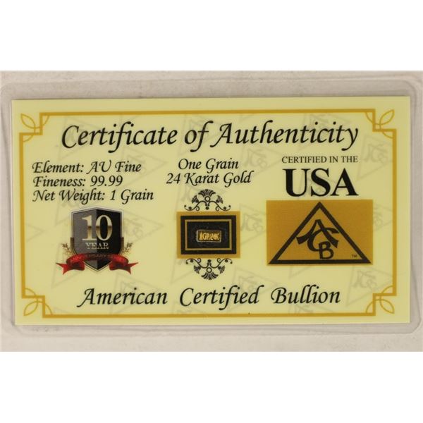 AMERICAN CERTIFIED BULLION: ONE GRAIN (NOT GRAM)