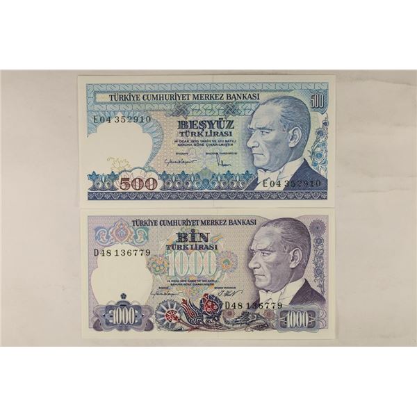 UNC NOTES. 500 LIRA & 1000 LIRA