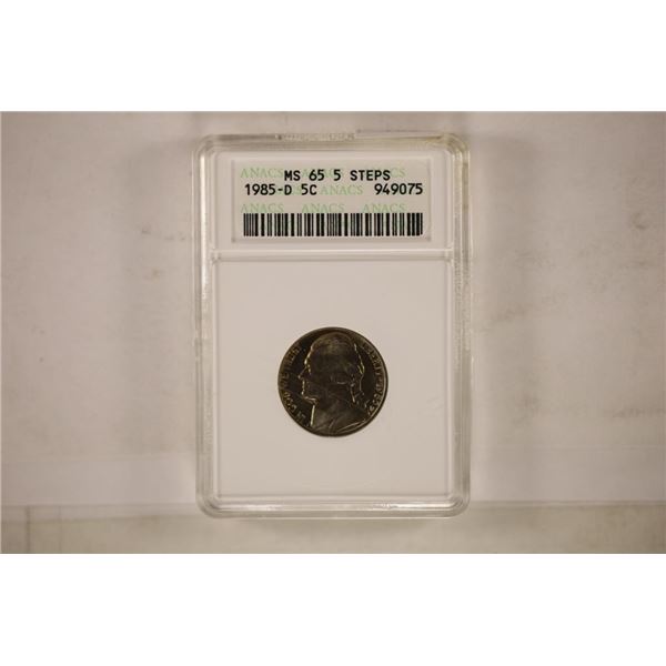 1985-D JEFFERSON NICKEL ANACS MS65 5 STEPS