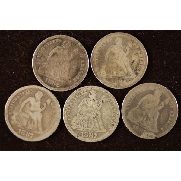 5 ASSORTED 1880'S SEATED LIBERTY DIMES