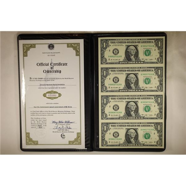 2009 UNCUT SHEET OF 4-$1 FEDERAL RESERVE NOTES