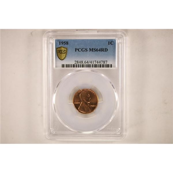 1958 LINCOLN WHEAT CENT PCGS MS64RD GOLD SHIELD