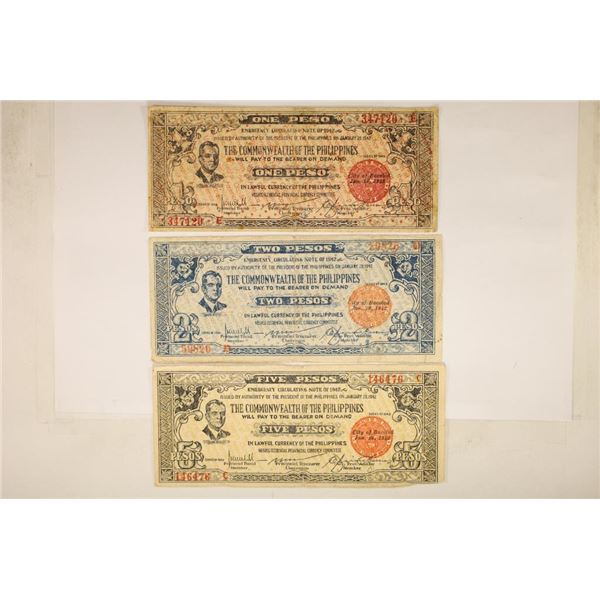3-WWII PHILIPPINES EMERGENCY CURRENCY: 1, 2 & 5