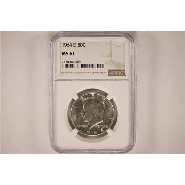 1964-D KENNEDY HALF DOLLAR NGC MS61