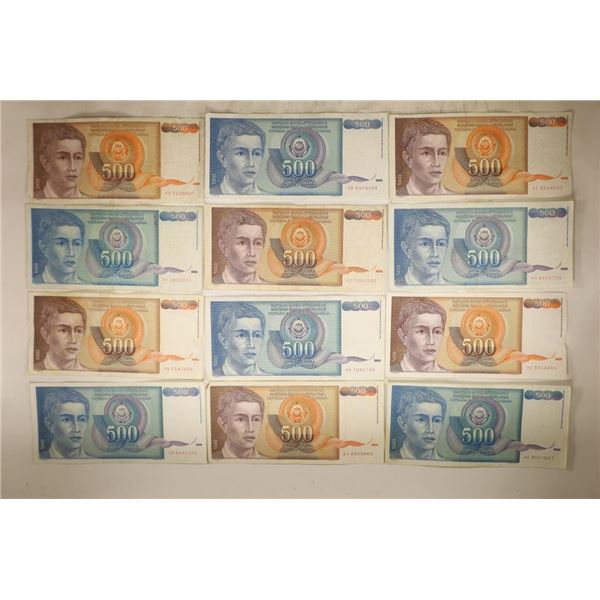 12 YUGOSLAVIAN BILLS: 6-1990-500 DINARA AND