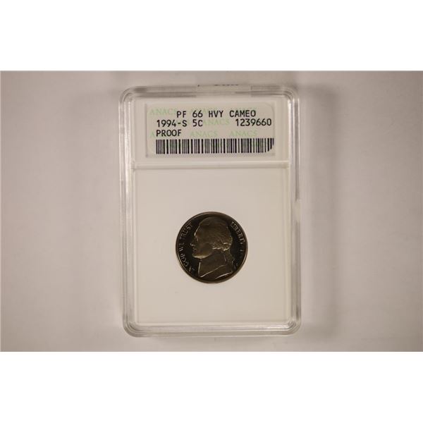 1994-S JEFFERSON NICKEL ANACS PF66 HEAVY CAMEO PF