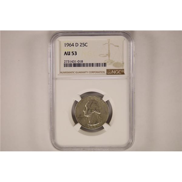 1964 WASHINGTON SILVER QUARTER NGC AU53