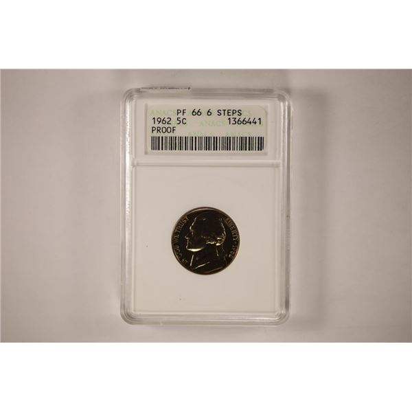 1962 JEFFERSON NICKEL ANACS PF66 6 STEPS PROOF