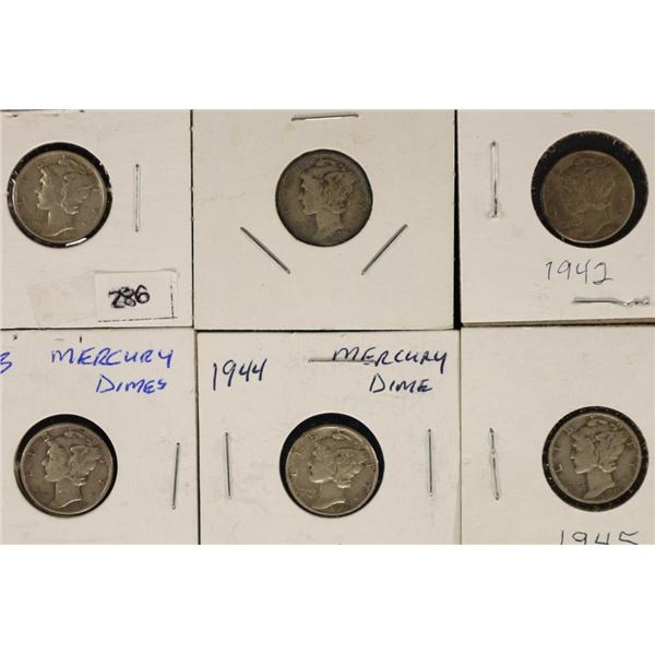 6 ASSORTED SILVER MERCURY DIMES: 1941, 41-D, 42,