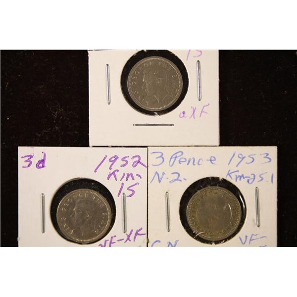 3-NEW ZEALAND SILVER 3 PENCE 1951, 1952 & 1953