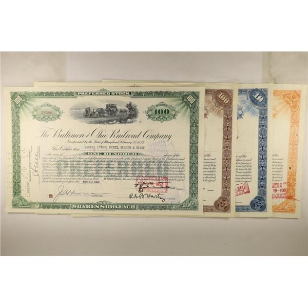 4 ASSORTED VINTAGE RAILROAD STOCK CERTIFICATES