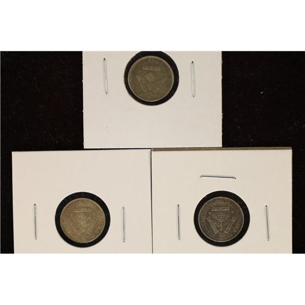3-SOUTH AFRICA SILVER THREE PENCE: 1935, 1942 &