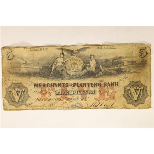 1800'S STATE OF GEORGIA $5 MERCHANT & PLANTERS