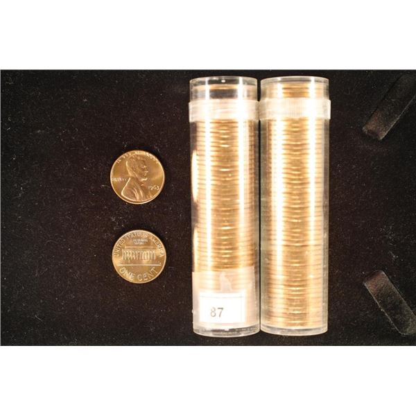 2-SOLID DATE ROLLS OF LINCOLN CENTS: 2-1963-P BU'S