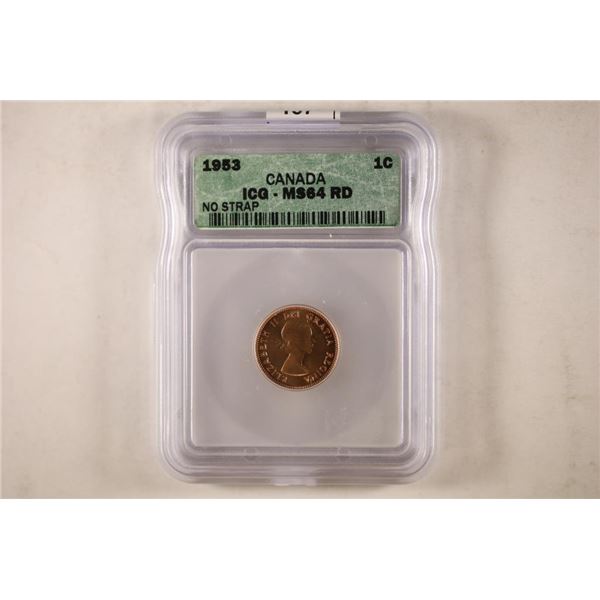 1953 NO STRAP CANADA CENT ICG MS64RD