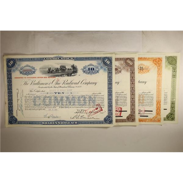 4 ASSORTED VINTAGE RAILROAD STOCK CERTIFICATES