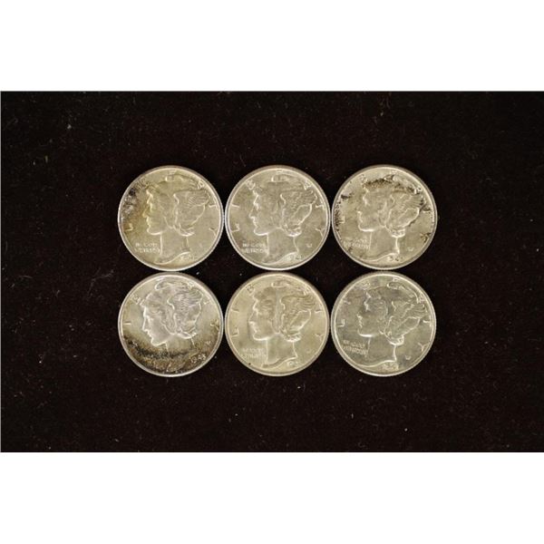 6 ASSORTED 1940'S MERCURY DIMES ALL AU'S285 - 6 ASSORTED 1940'S MERCURY DIMES ALL AU'S