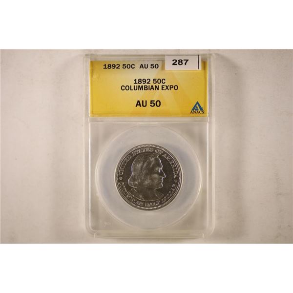 1892 COLOMBIAN EXPOSITION HALF DOLLAR ANACS AU50287 - 1892 COLOMBIAN EXPOSITION HALF DOLLAR ANACS AU50
