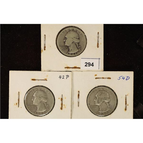 1941-P, 1942-P & 1954-D WASHINGTON SILVER QUARTERS294 - 1941-P, 1942-P & 1954-D WASHINGTON SILVER QUARTERS