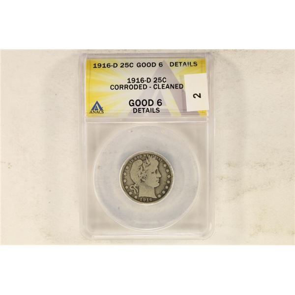 1916-D SILVER BARBER QUARTER ANACS GOOD 6 DETAILS2 - 1916-D SILVER BARBER QUARTER ANACS GOOD 6 DETAILS