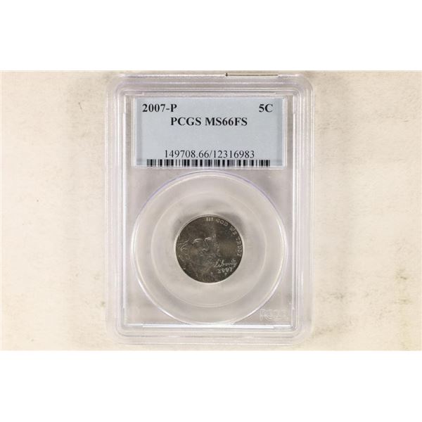 2007-P JEFFERSON NICKEL PCGS MS66 FS3 - 2007-P JEFFERSON NICKEL PCGS MS66 FS