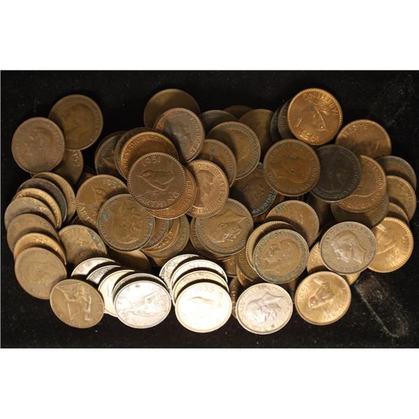 100 ASSORTED BRITISH FARTHINGS: 1920-19558 - 100 ASSORTED BRITISH FARTHINGS: 1920-1955