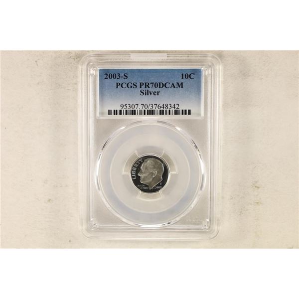 2003-S SILVER ROOSEVELT DIME PCGS PR70 DCAM50 - 2003-S SILVER ROOSEVELT DIME PCGS PR70 DCAM