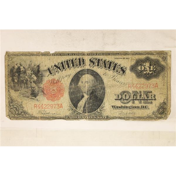 SERIES 1917 US LARGE SIZE $1 NOTE (SAW HORSE) HORSE BLANKET