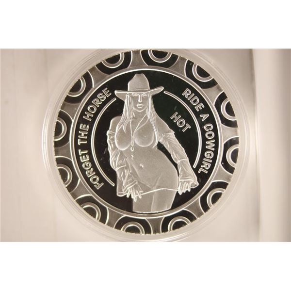 ROUND. POKER CHIP DESIGN WITH WOMEN "FORGET THE HORSE RIDE A COWGIRL" ON OBVERSE AND "YOU LOSE" ON REVERSE. BRAND NEW IN HAR...