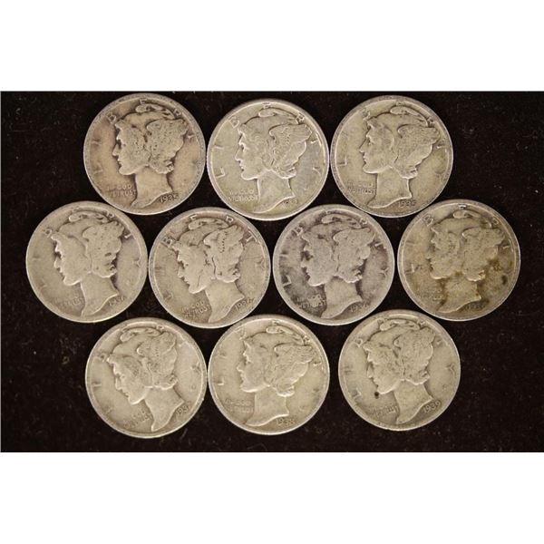 10 ASSORTED 1930'S SILVER MERCURY DIMES
