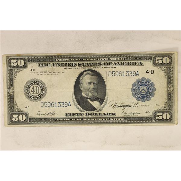 1914 US $50 FRN LARGE SIZE BLUE SEAL