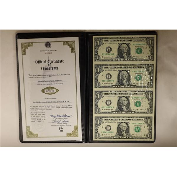 2009 UNCUT SHEET OF 4-$1 FRN'S CRISP UNC IN NICE159 - 2009 UNCUT SHEET OF 4-$1 FRN'S CRISP UNC IN NICE